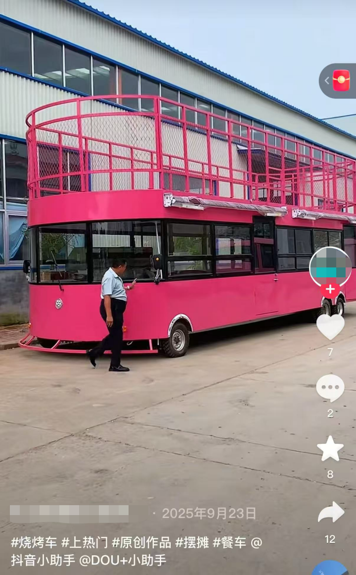双层烧烤巴士应声问世,二层还贴心做上比人高的钢铁围栏,以防哪位食客喝多了兴奋之余激动跳车。
